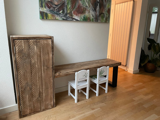 Steigerhouten bank met lades Marleen
